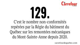 –129. C’est le nombre non-conformités repérées par la Régie du bâtiment du Québec sur les remontées mécaniques du Mont-Sainte-Anne depuis 2020. La…
