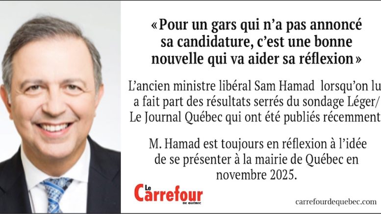 M. Hamad est toujours en réflexion à l’idée de se présenter à la mairie de Québec en novembre 2025.