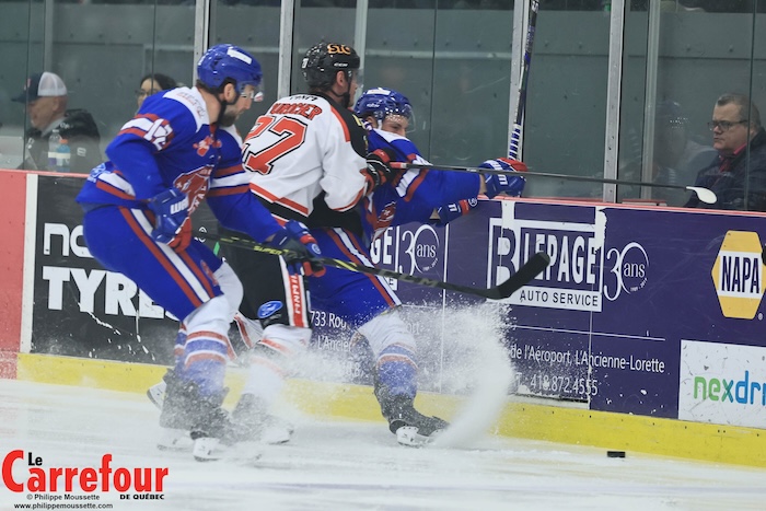 Plusieurs amateurs s’étaient déplacés pour voir le National de Québec au complexe sportif Bonair de L’Ancienne-Lorette ce soir lors du 4e match de la série demi-finale de la ligne nord-américaine de hockey. Malheureusement, Ils se sont inclinés 4 à 2 contre les Éperviers de Sorel-Tracy. Notons que c’était la première année d’existence de l’équipe cette année.