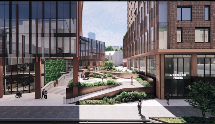 Le promoteur prévoit notamment une tour de 17 étages, environ 400 logements, 2 465 m² de verdissement, une épicerie, 400 places de stationnement et 20 logements sociaux (PSL), en réponse aux demandes exprimées lors des consultations publiques.