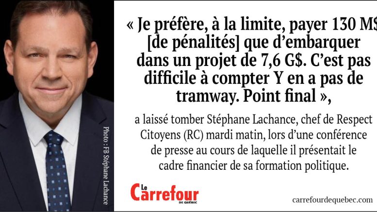 « Je préfère, à la limite, payer 130 M$ [de pénalités] que d’embarquer dans un projet de 7,6 G$. C’est pas difficile à compter Y en a pas de tramway. Point final »,