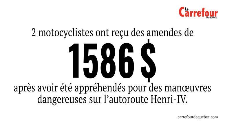 -2 motocyclistes ont reçu des amendes de 1586 $ après avoir été appréhendés pour des manœuvres dangereuses sur l’autoroute Henri-IV.
