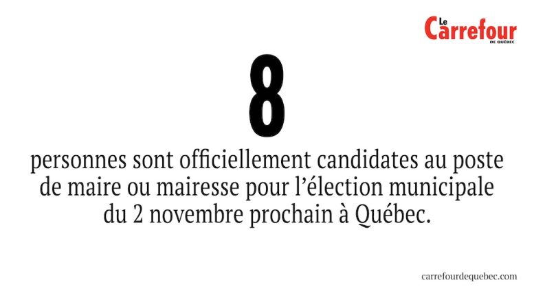 -8 personnes sont officiellement candidates au poste de maire ou mairesse pour l’élection municipale du 2 novembre prochain à Québec.