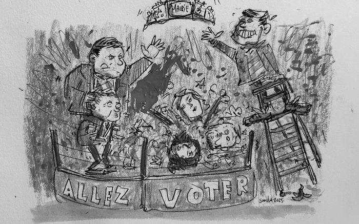 C’est la fin de la campagne électorale municipale qui fait l’objet du coup de crayons de notre ami, l’illustrateur Luc Sanschagrin ce mois-ci.