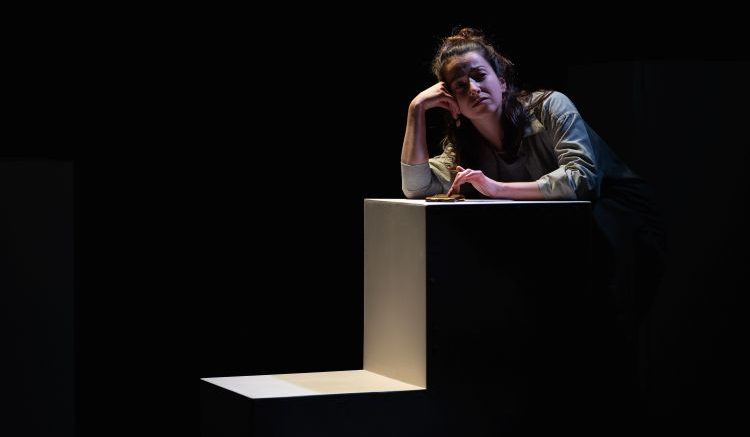 Seule, elle dialogue avec une voix off, sa petite voix intérieure, tour à tour complice et tortionnaire.