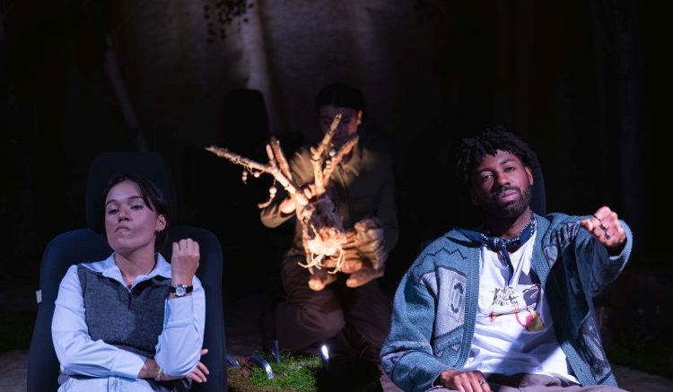Dès que le duo quitte la route principale et pénètre en forêt, la pièce bascule dans un réalisme magique subtil : un jackalope surgit et provoque un accident, la voix de la mère revient par bribes, et les contours du monde se brouillent juste assez pour ouvrir une brèche vers l’imaginaire. Loin d’un enrobage fantaisiste, le conte sert ici de cadre pour parler de la mort autrement.