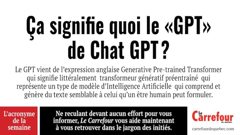 Le GPT vient de l’expression anglaise Generative Pre-trained Transformer qui signifie littéralement transformeur génératif préentraîné est un type de modèle d’Intelligence Artificielle qui comprend et génère du texte semblable à celui qu’un être humain peut formuler.
