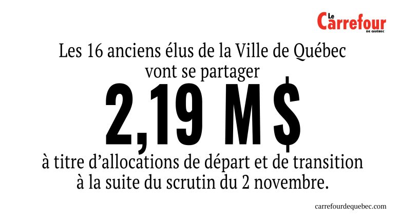 -Les 16 anciens élus de la Ville de Québec vont se partager 2,19 M$ à titre d’allocations de départ et de transition à la suite du scrutin du 2 novembre.