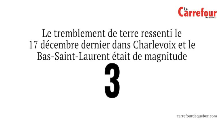 -Le tremblement de terre ressenti le 17 décembre dernier dans Charlevoix et le Bas-Saint-Laurent était de magnitude 3.