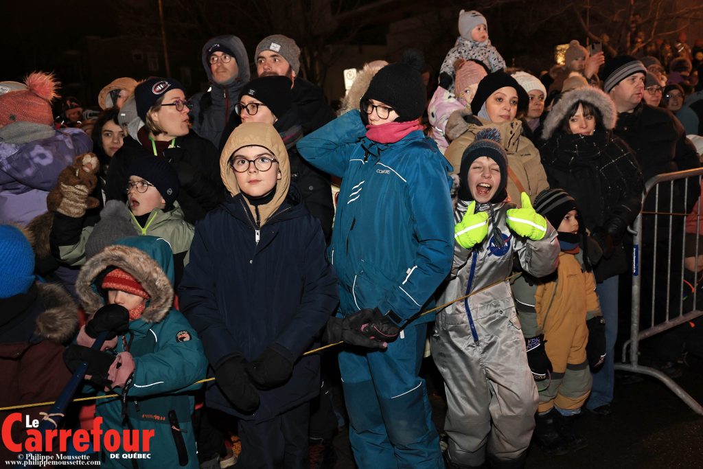La Grande Allée était déjà bien achalandée avant le coup d’envoi. Couples, familles, groupes d’amis et beaucoup de curieux venus seuls se sont massés le long du parcours pour profiter de l’ambiance. Le passage des chars, des troupes costumées et des installations lumineuses a créé un ensemble festif et harmonieux.