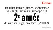 –En juillet dernier, Québec a été nommée ville la plus active au Québec pour la 2e année de suite par…