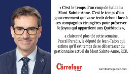 « C’est le temps d’un coup de balai au Mont-Sainte-Anne. C’est le temps d’un gouvernement qui va se tenir debout…