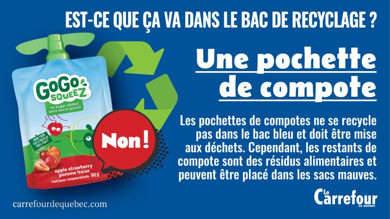 Est-ce que ça va dans le bac recyclage ou pas? Non ! La pochette de compote de pommes ne se…