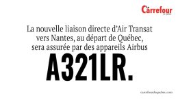 -La nouvelle liaison directe d’Air Transat vers Nantes, au départ de Québec, sera assurée par des appareils Airbus A321LR. Dés…