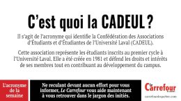 C’est quoi la CADEUL? Il s’agit de l’acronyme qui identifie la Confédération des Associations d’Étudiants et d’Étudiantes de l’Université Laval (…