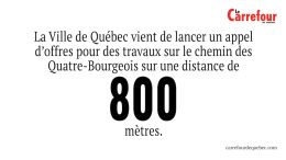 -La Ville de Québec vient de lancer un appel d’offres pour des travaux sur le chemin des Quatre-Bourgeois sur une distance de 800…