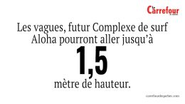 –Les vagues, futur Complexe de surf Aloha pourront aller jusqu’à 1,5 mètre de hauteur. Il s’agira de la plus haute…