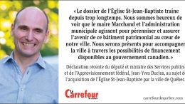 « Le dossier de l’Église St-Jean-Baptiste traîne depuis trop longtemps. Nous sommes heureux de voir que le maire Marchand et l’administration…