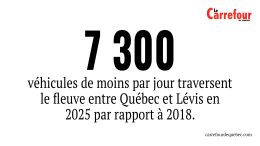–7300 véhicules de moins par jour traversent le fleuve entre Québec et Lévis en 2025 par rapport à 2018. La…