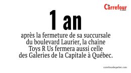 –1 an après la fermeture de sa succursale du boulevard Laurier, la chaine Toys R Us fermera aussi celle des…