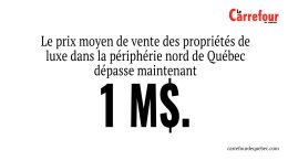 -Le prix moyen de vente des propriétés de luxe dans la périphérie nord de Québec dépasse maintenant 1 M$. Le…