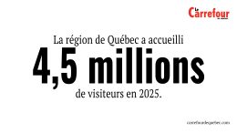 -La région de Québec a accueilli 4,5 millions de visiteurs en 2025, soit 100 000 de plus que l’an dernier….
