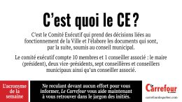 Lire la suiteC’est quoi le CE ? C’est le Comité Exécutif qui prend des décisions liées au fonctionnement de la Ville et…
