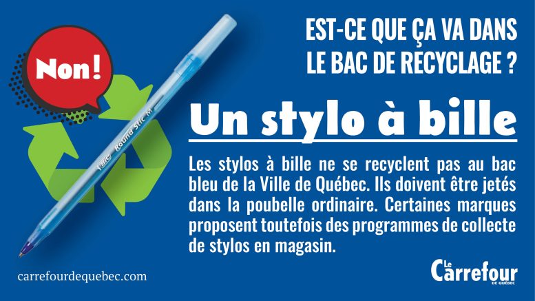 Est-ce que ça va dans le bac recyclage ou pas? Non! Non, les stylos à bille ne se recyclent pas au…