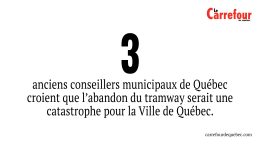 -3 anciens conseillers municipaux de Québec croient que l’abandon du tramway serait une catastrophe pour la Ville de Québec. Ces…
